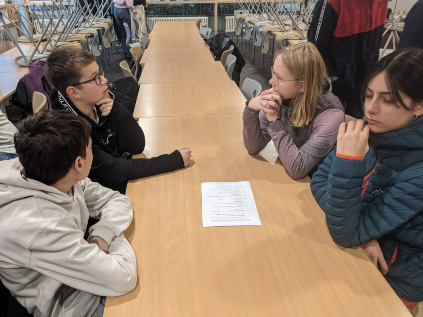 À l’issue de cette longue matinée, tous se sont retrouvés pour partager un déjeuner au sein du collège, composé de pain, charcuterie et fruits. Certains élèves allemands avaient apporté des Plätzchen, de petits gâteaux préparés en famille, qu’ils ont pu faire découvrir à leurs camarades.