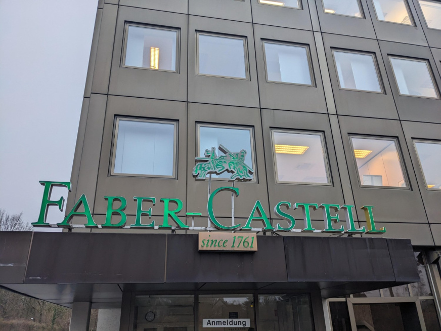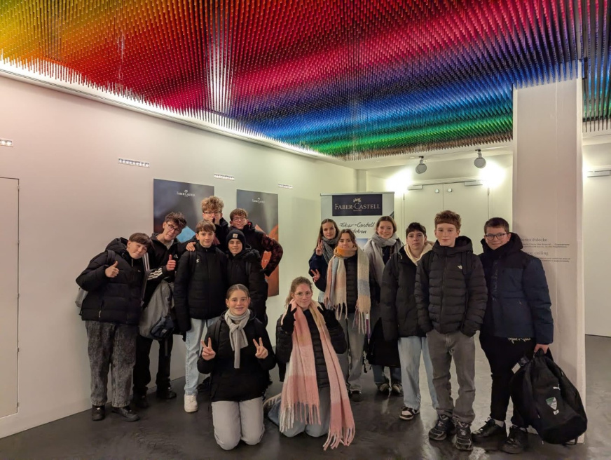Mercredi 3 décembre, les élèves français ont visité la fabrique de crayons Faber-Castell, située à Stein. Ils y ont découvert l’histoire de cette entreprise, l’une des plus anciennes industries encore en activité dans le monde. Une présentation complète du processus de fabrication des crayons (papier ou couleur) leur a été proposée, depuis la planche de bois jusqu’au produit fini. Les élèves ont ainsi pu observer de grandes machines automatisées, impressionnantes tant par leur taille que par le bruit qu’elles produisent.